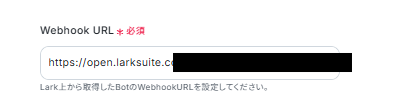 設定画面上部に記載のあるWebhookURLの取得方法から、WebhookURLを取得して入力してください。 ※ブラウザとアプリで表示が違うので、Larkアプリをダウンロードして設定するのをおすすめします。