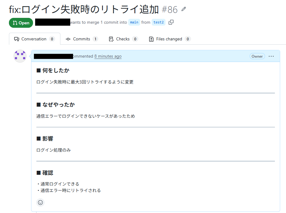 ここで以下のように、GitHubにプルリクエストを作成しておきます。