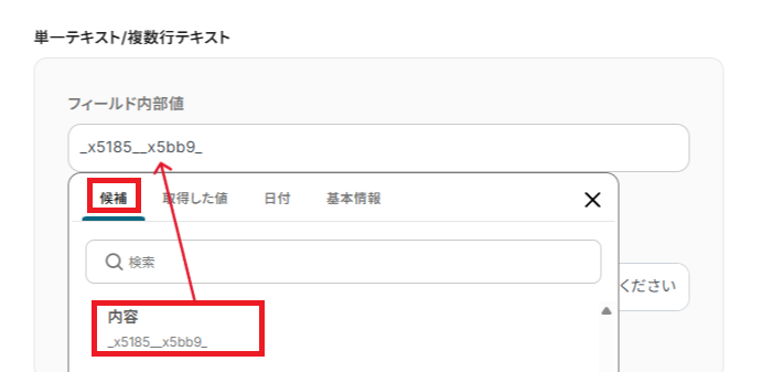 「フィールド内部値」は、候補から設定可能です。