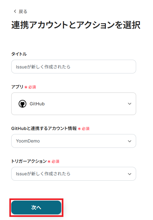 まず、「Issueが新しく作成されたら」をクリックしてください。