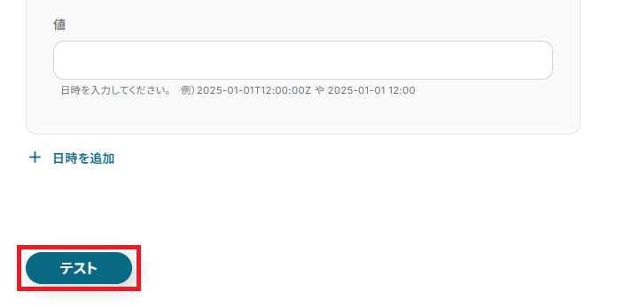 全ての入力が完了したら、「テスト」を実行してください。
