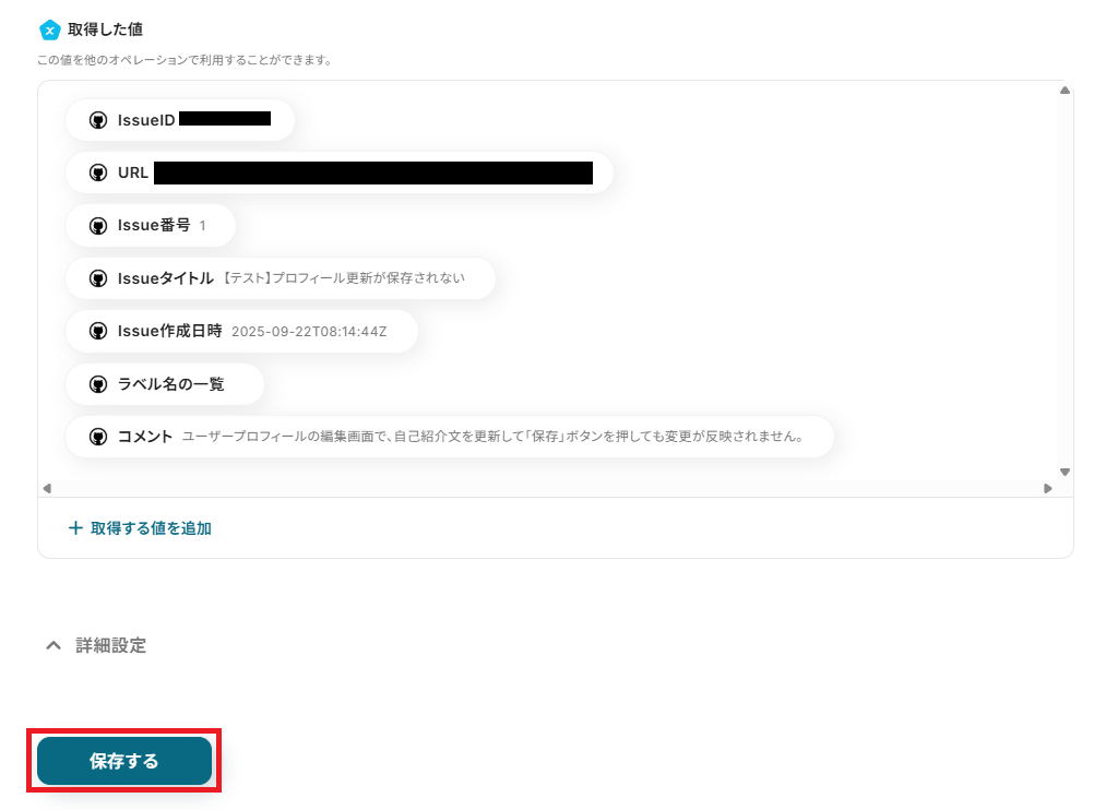Issueの内容が反映していればOKです。「保存する」を押して次に進みましょう!