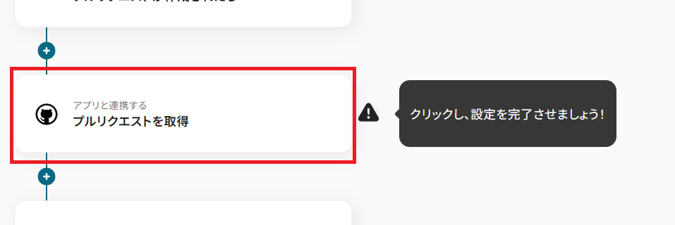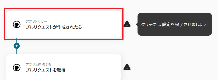 今回のアプリトリガーになっている「プルリクエストが作成されたら」をクリックして、詳細設定を行いましょう。