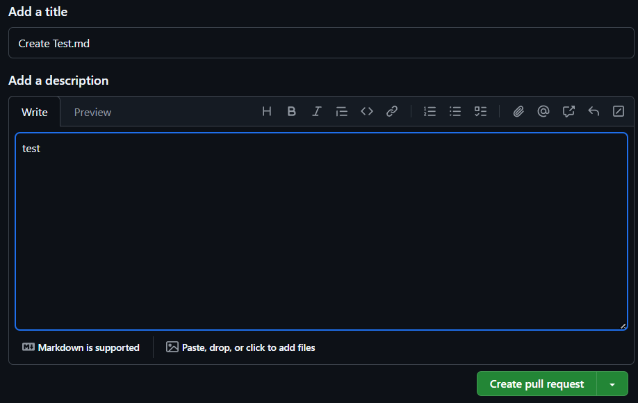 今回は以下のように、テストのためのプルリクエストを作成してみました。