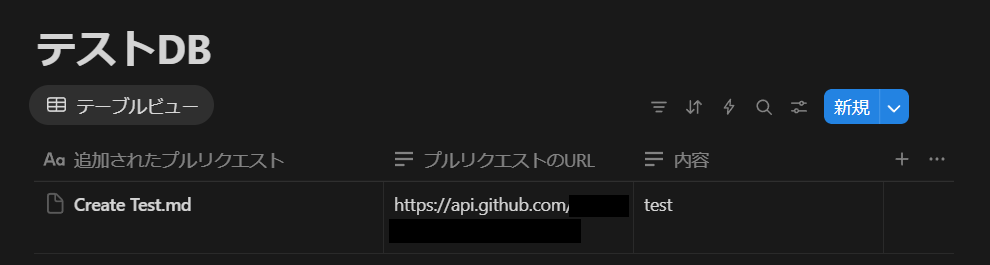 これで、GitHubでプルリクエストが新しく作成されたら、自動で任意の内容をNotion側のデータベースに反映させられるようになりました。