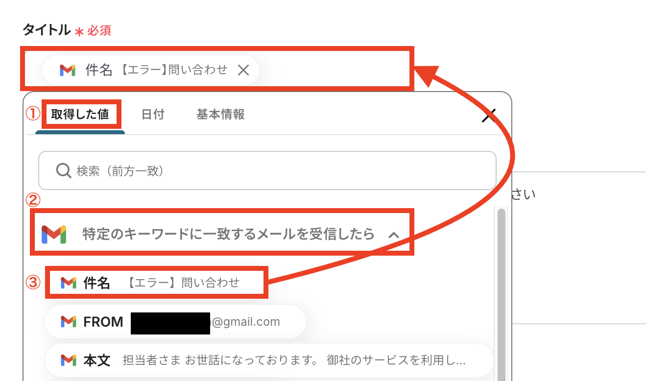 ※今回は「件名」を活用しますが、他の値を活用してもOKです!