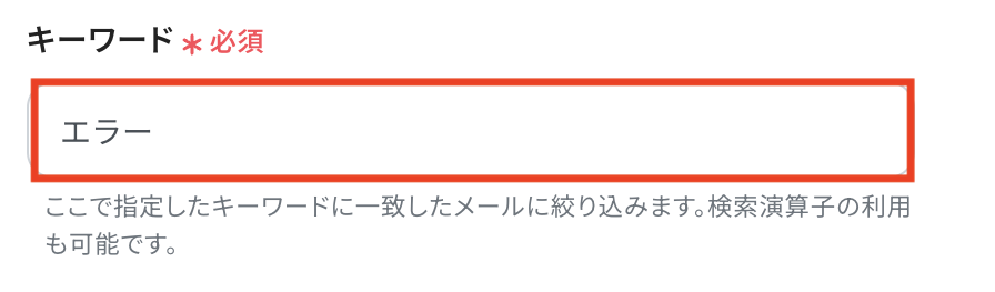 「トリガーアクション」:デフォルトで「特定のキーワードに一致するメールを受信したら」が選択されているので、変更しないでOKです!