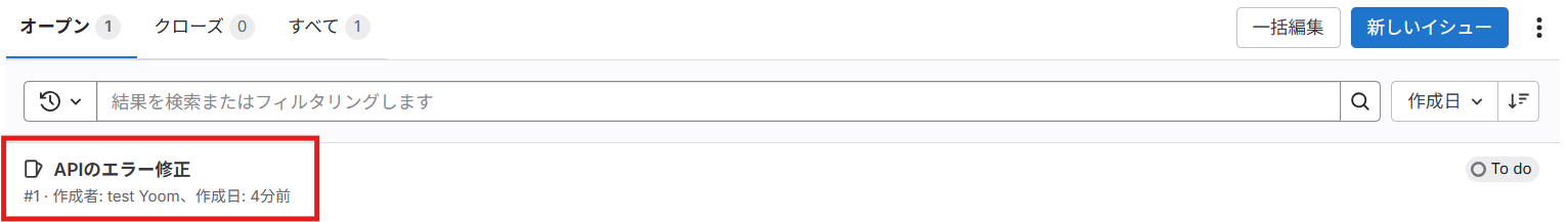 ここまで設定が完了したら、次にGitlabの画面に移り、連携したプロジェクトに新しいイシューを追加します。