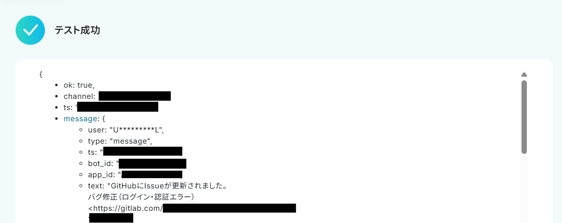 設定したキーワードがIssue内に含まれている場合、その情報がSlackに通知されます。