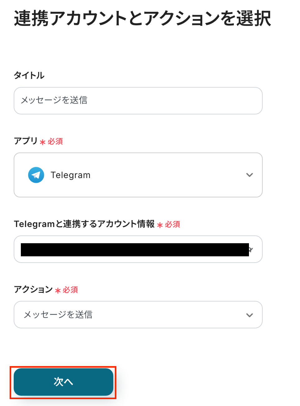 ステップ4:Telegramへメッセージ送信する設定