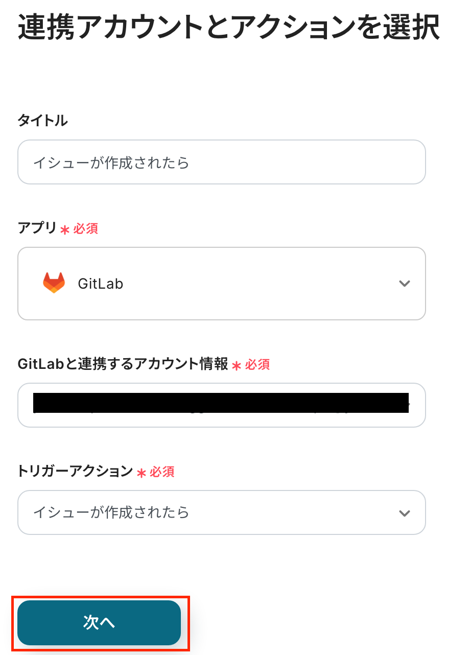 アクションは「イシューが作成されたら」を設定したら、次の画面に進みましょう!