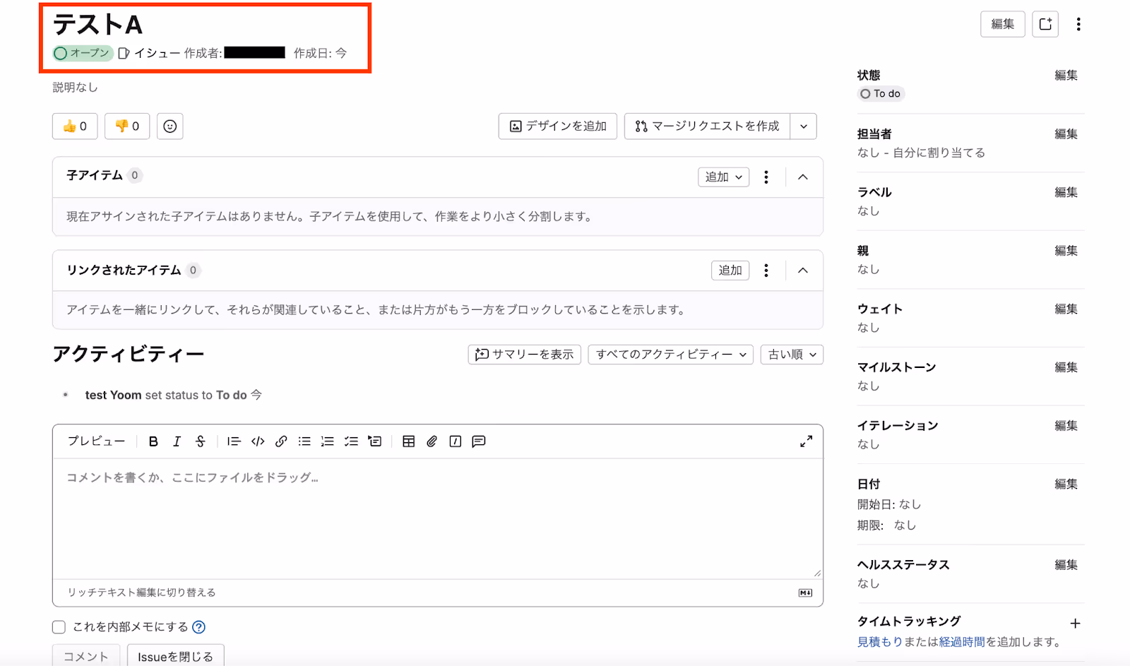 プロジェクトIDの設定ができたら、実際にGitLab上でイシューを作成しましょう。