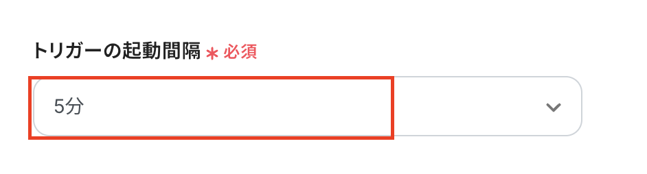 トリガーの起動タイミングは、5分、10分、15分、30分、60分のいずれかで設定できます。
