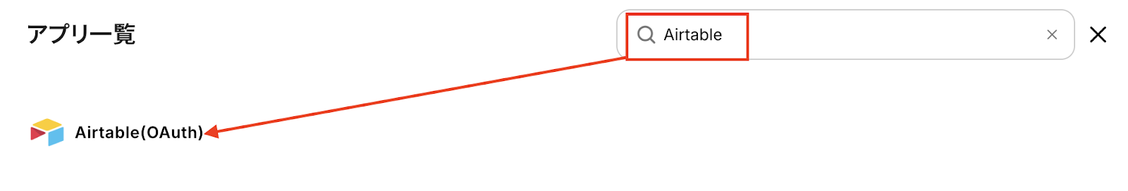 アプリ一覧で、Airtable(OAuth)を選択します。
