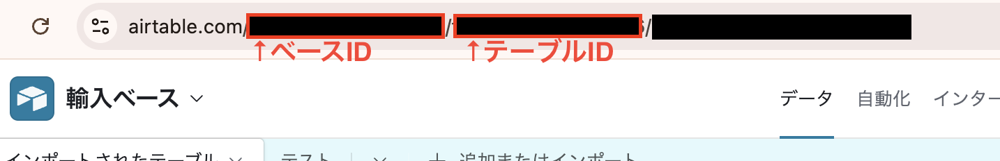 ベースIDとテーブルIDまたは名前を設定してください。