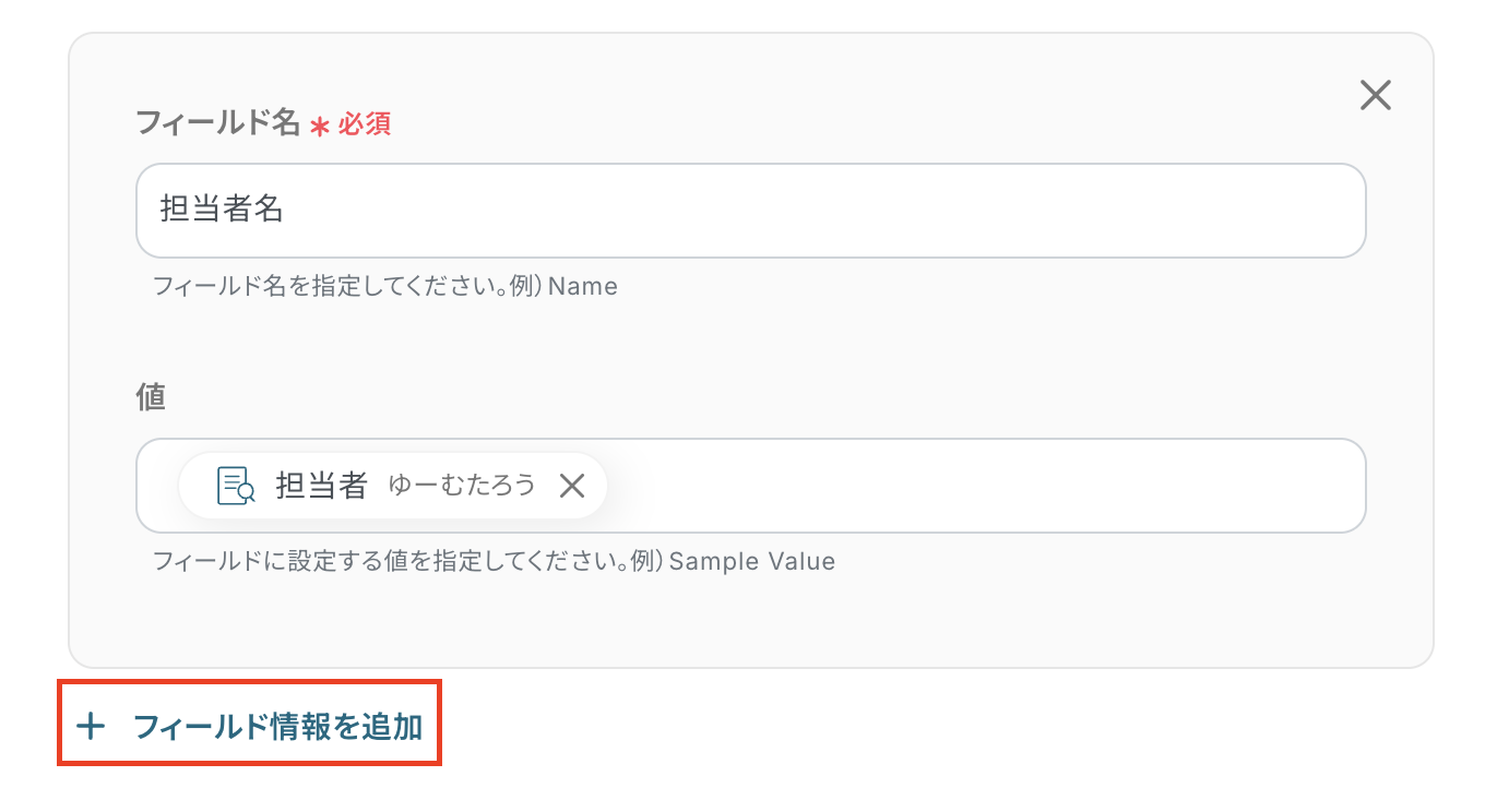 項目を増やしたい時は、「フィールド情報を追加」から行えます。