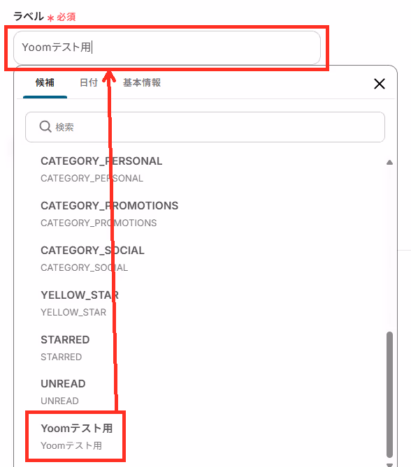 今回は次のような内容で作成し、「Yoomテスト用」というラベルを付与しました。