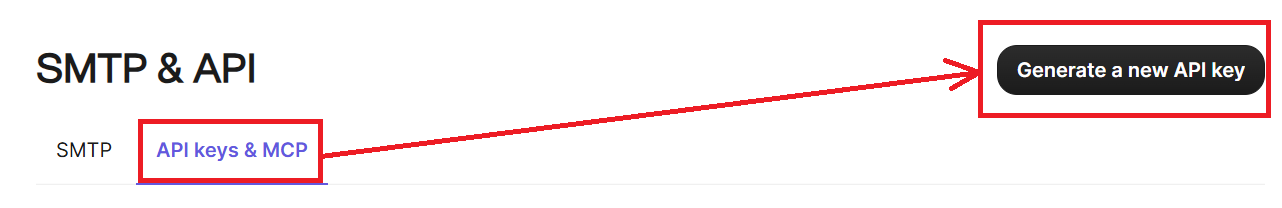 Brevoにログインしたら、右上にある自分のアカウントをクリックしてから、「SMTP&API」をクリックします。