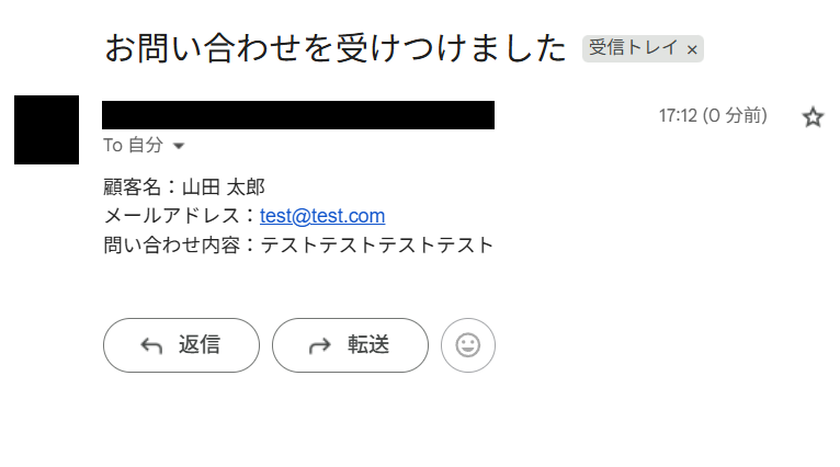 ここでテスト用に、先ほど連携させたGmailのアドレスに「問い合わせ」というキーワードの含まれたメールを送ってみます。
