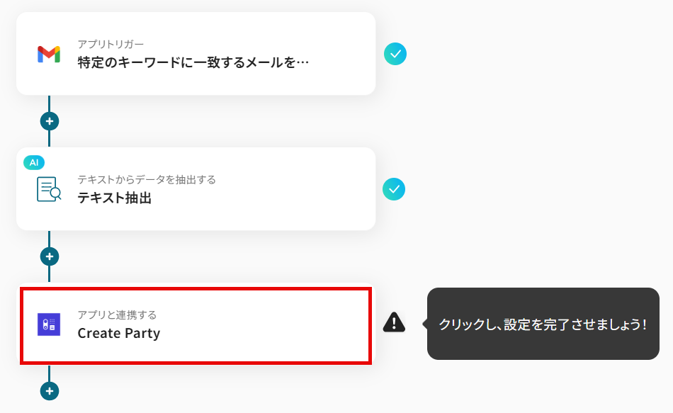 このワークフローを活用すれば、Capsule CRMに新しいPartyが追加されると自動でGoogleカレンダーに予定が作成されるため、こうした連携作業を効率化できます。