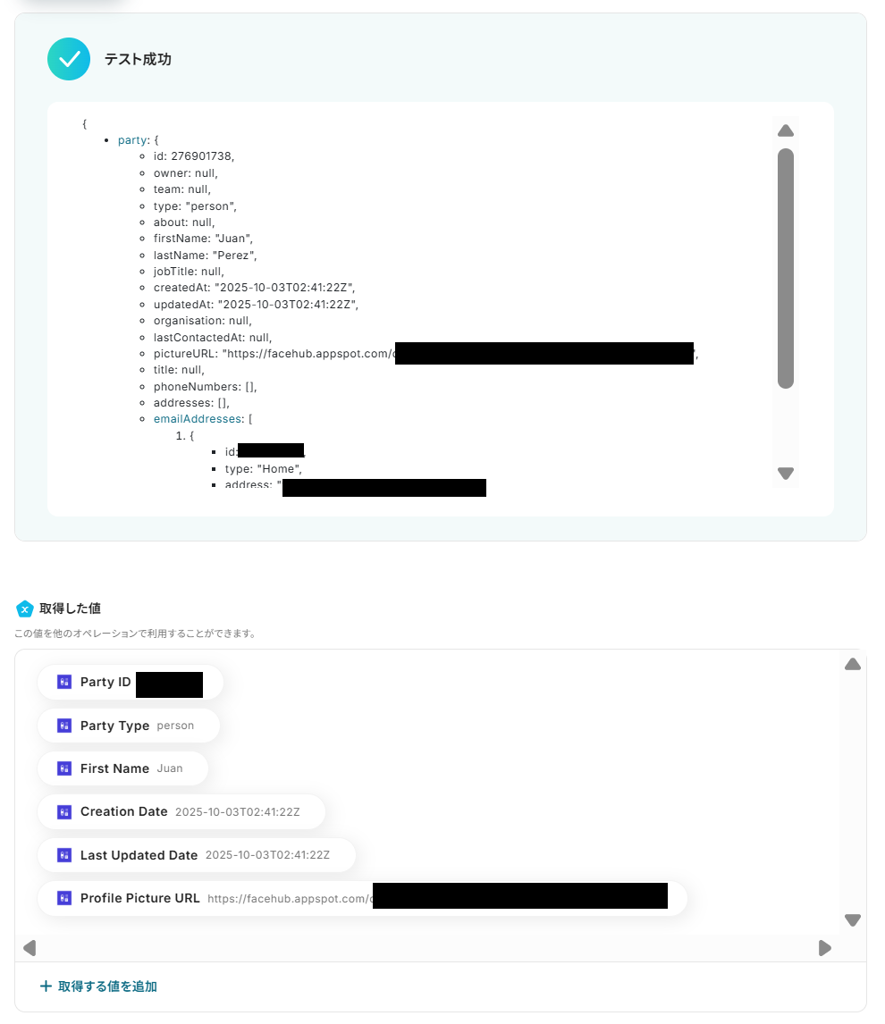 前項で取得した値から、Capsule CRMでPartyを作成する設定を行います。