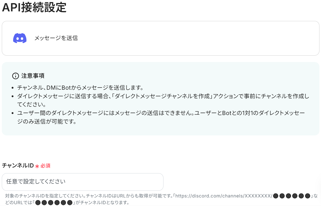 ※アクセストークンにはDiscord Developer Portalから取得したBotトークンを設定しましょう。詳細な設定方法はこちら。