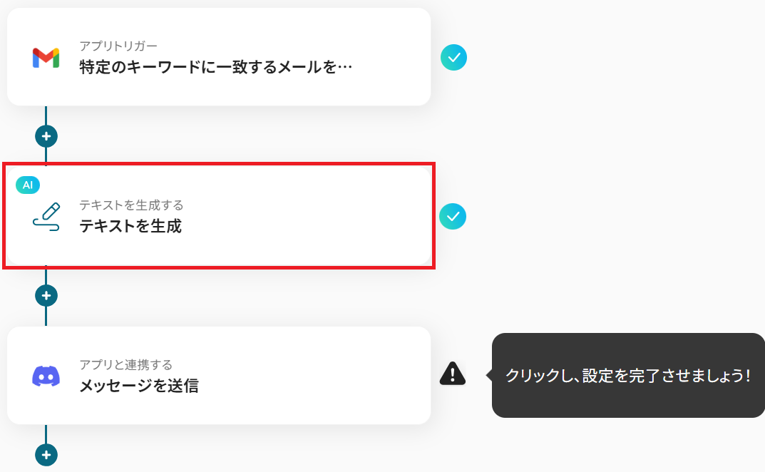この連携では特定の条件(件名や本文に特定のキーワードが含まれる等)に合致したメールのみをトリガーにできるため、緊急性の高い問い合わせに絞ってAIが回答案を作成しDiscordに通知できます。