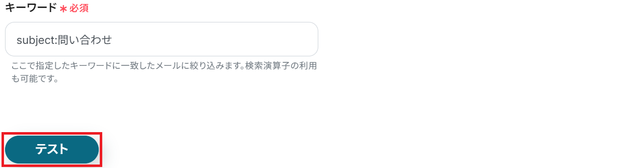 最後に、連携したGmailアドレスに上記のキーワードを含むテストメールを送信しておきましょう。