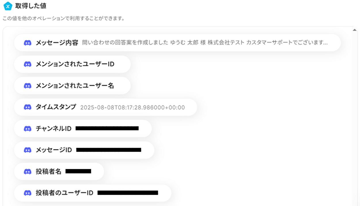 取得した値を活用することで、固定値ではなく、トリガーが実行されるたびに最新の情報を反映できます。