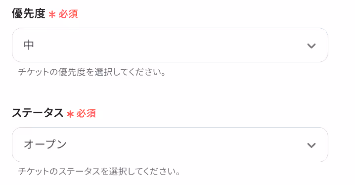 「優先度」と「ステータス」はプルダウンから選択しましょう。