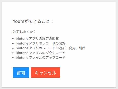 下記の画面が表示されたら「許可」ボタンを押下しYoomとkintoneの連携を行いましょう。
