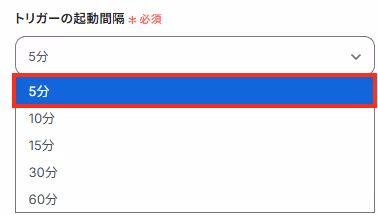 「アプリトリガーのAPI接続設定」画面が表示されたら以下を設定していきます。