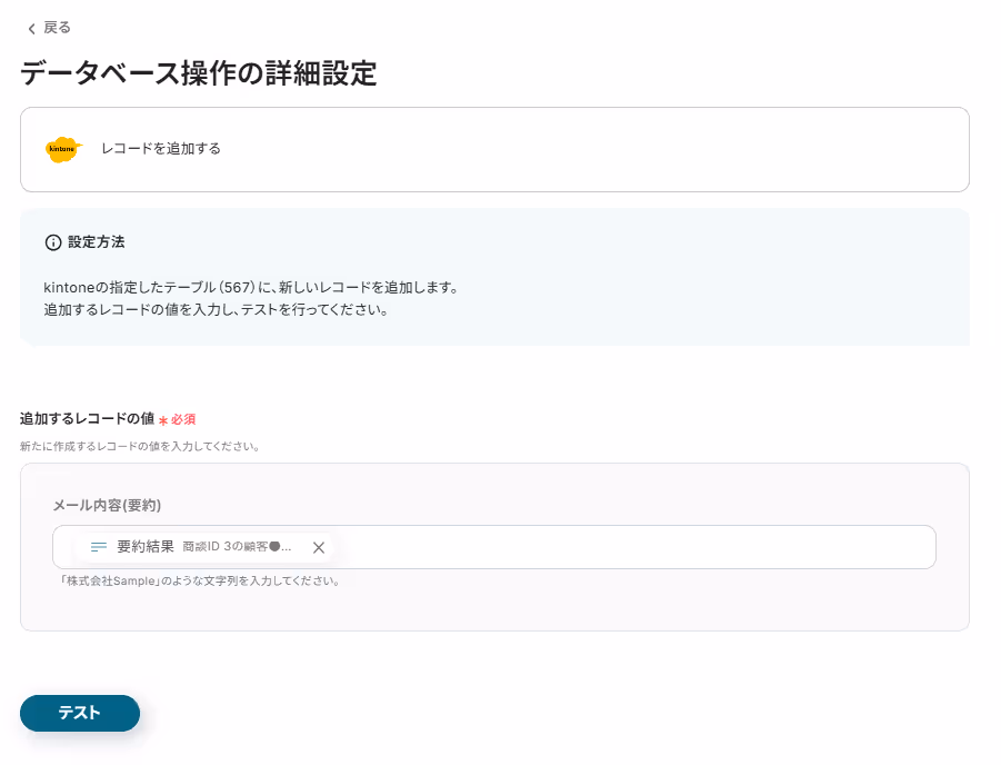 ※ kintoneのアプリに実際に書き込みが行われます。