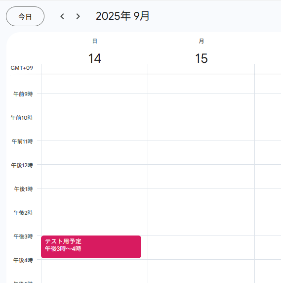 ※ 直近1時間以内にイベントが登録されていない場合はテストに失敗します。