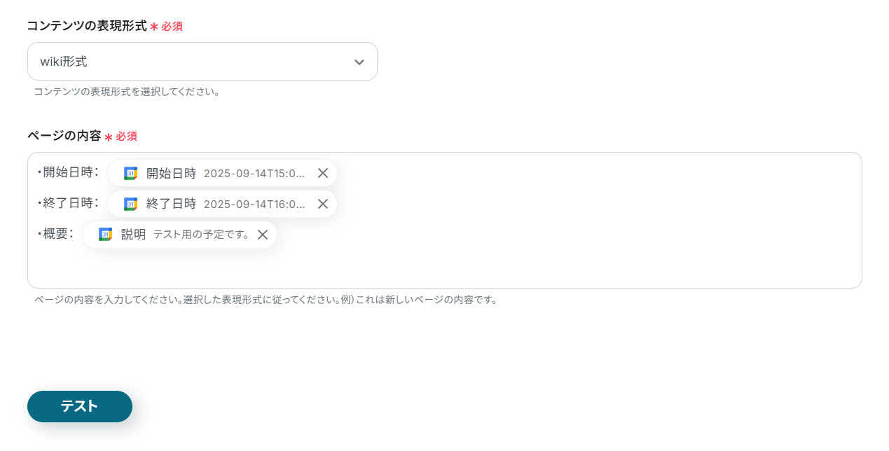Googleカレンダーに特定のキーワードを含む予定が作成されるたびに、その予定の概要や日時といった情報を基にして、Confluenceにページを自動で作成します。
