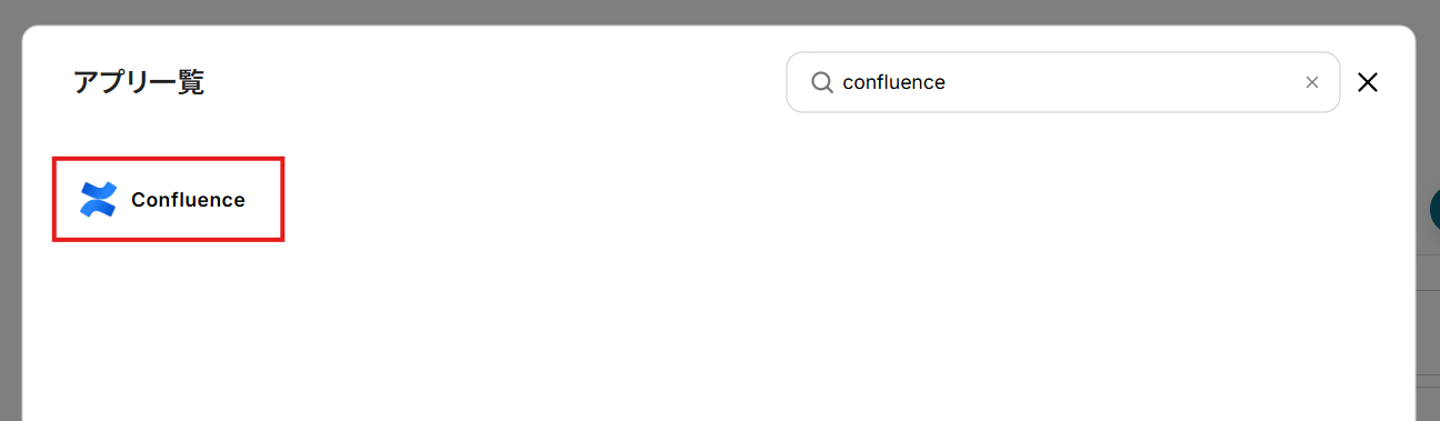- アプリ一覧画面でConfluenceを検索して選択。