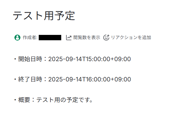 ※ テスト用予定の例