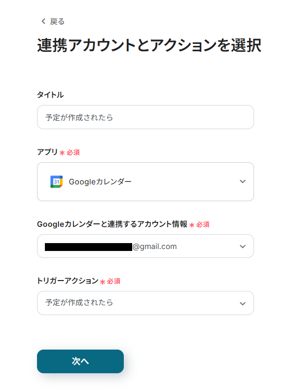 ステップ3:Googleカレンダーのトリガー設定