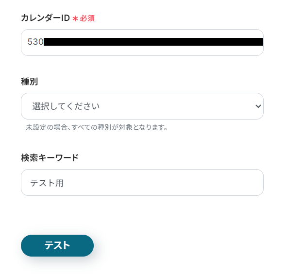 - 「カレンダーID」にイベントの作成を検知したいカレンダーのIDを設定。