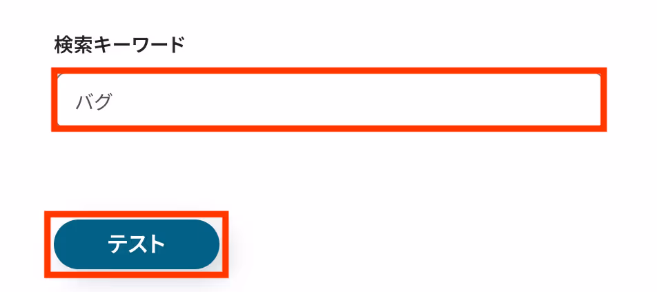 最後に「検索キーワード」を設定したら「テスト」を押します。