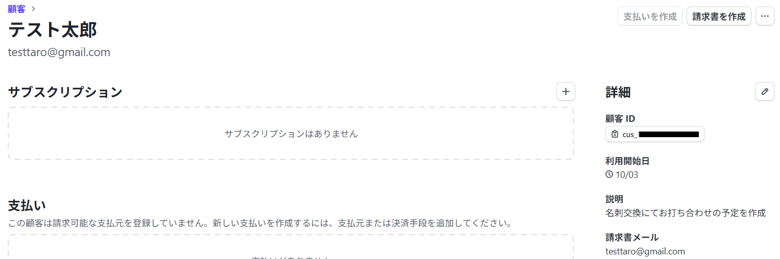 先ほど抽出した内容を、Stripeに顧客として登録します。