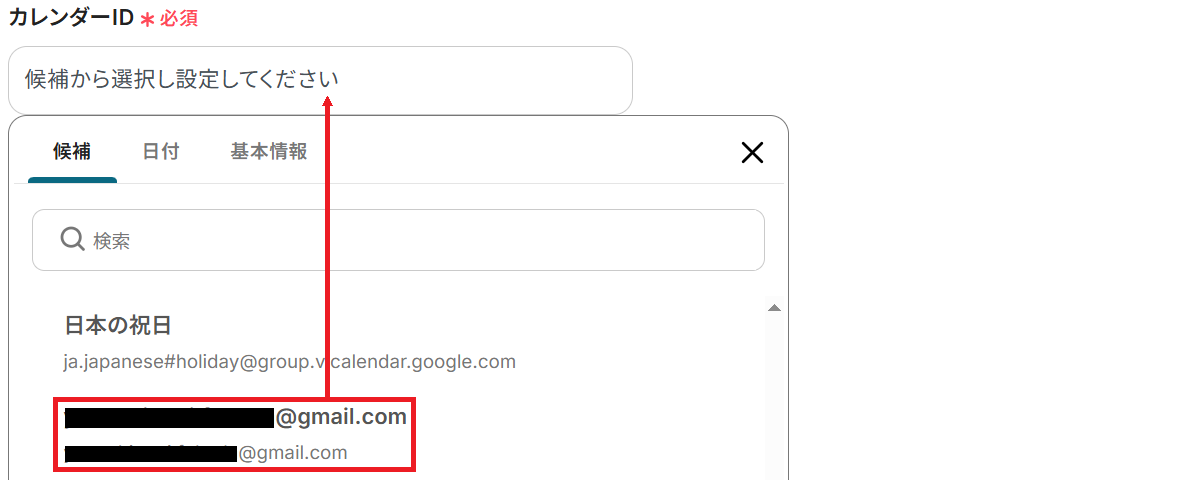 次に、カレンダーIDを候補から選択してください。