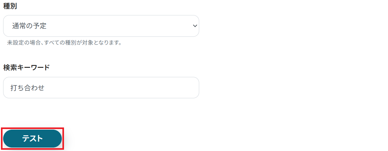 今回はテスト用に作成した予定に合わせて「打ち合わせ」というキーワードを設定しました。