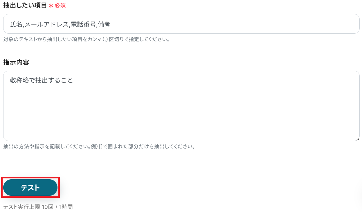 ※AIを使用した「データの抽出」アクションの設定方法もご参照ください。