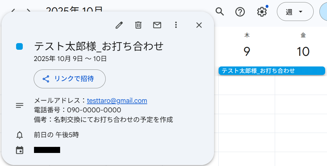 まず、Googleカレンダーでテスト用の予定を作成してください。