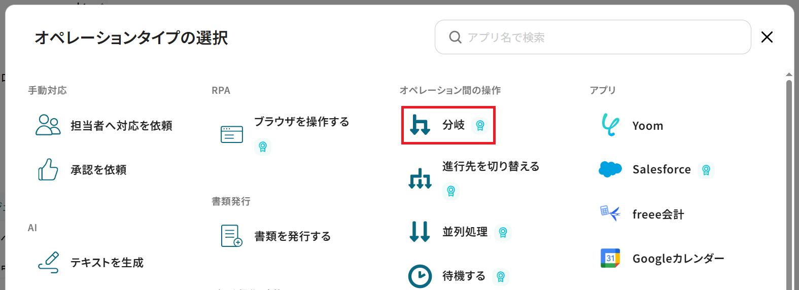 なお、「分岐する」オペレーションは、ミニプラン以上でご利用いただけます。フリープランで利用するとエラーになってしまうのでご注意ください。