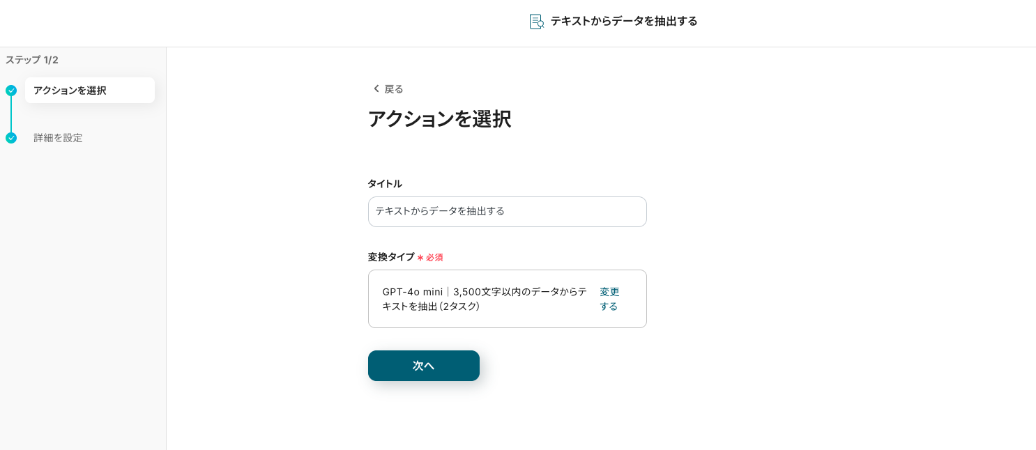 ステップ4:テキストからデータを抽出する「テキストからデータを抽出する」