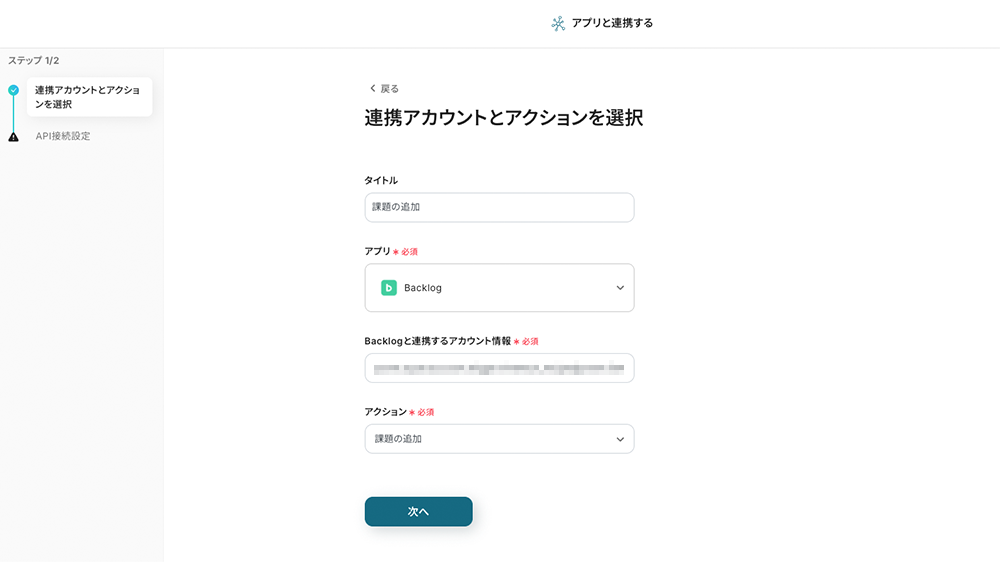 (1/2)連携アカウントとアクションを選択
