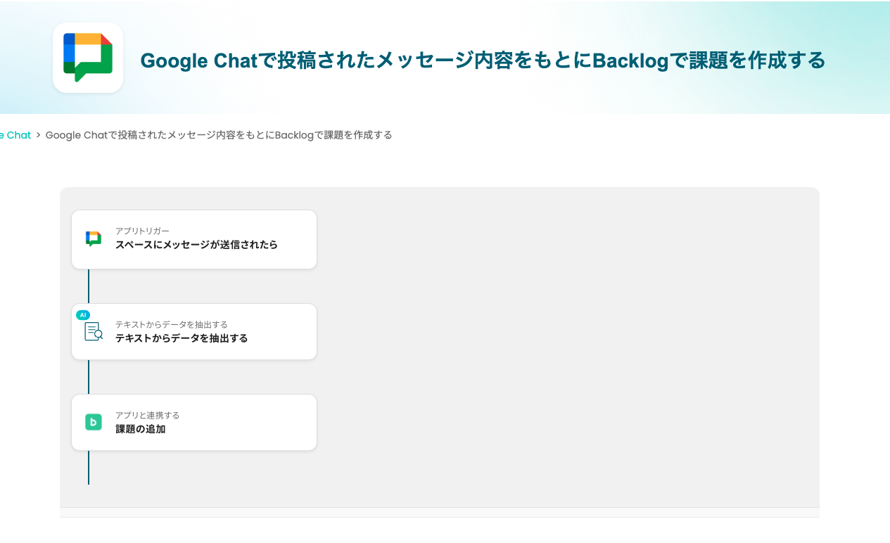 関連記事: 【簡単設定】Backlogに課題が追加されたらGoogle Chatに通知する方法