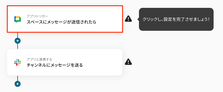 一つ目のオペレーションにある、「スペースにメッセージが送信されたら」をクリックしてください。